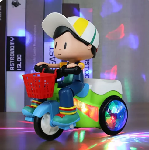 El Triciclo Acrobático es el juguete ideal para los niños que aman el movimiento, los colores y la música. Su diseño único con un pequeño ciclista incorporado, canastita frontal y ruedas iluminadas lo convierten en un juguete irresistible a primera vista. ¡Solo basta encenderlo y la magia comienza!